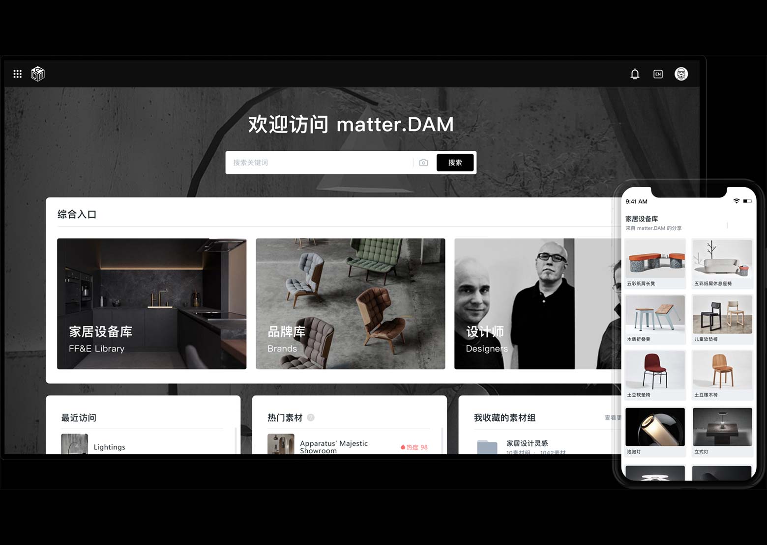 可以统计材料和家居装备的使用数据。matter.DAM 提供数据面板分析功能,帮助企业全面了解材料使用情况、以及人员调用情况,帮助企业更好地做创新材料。